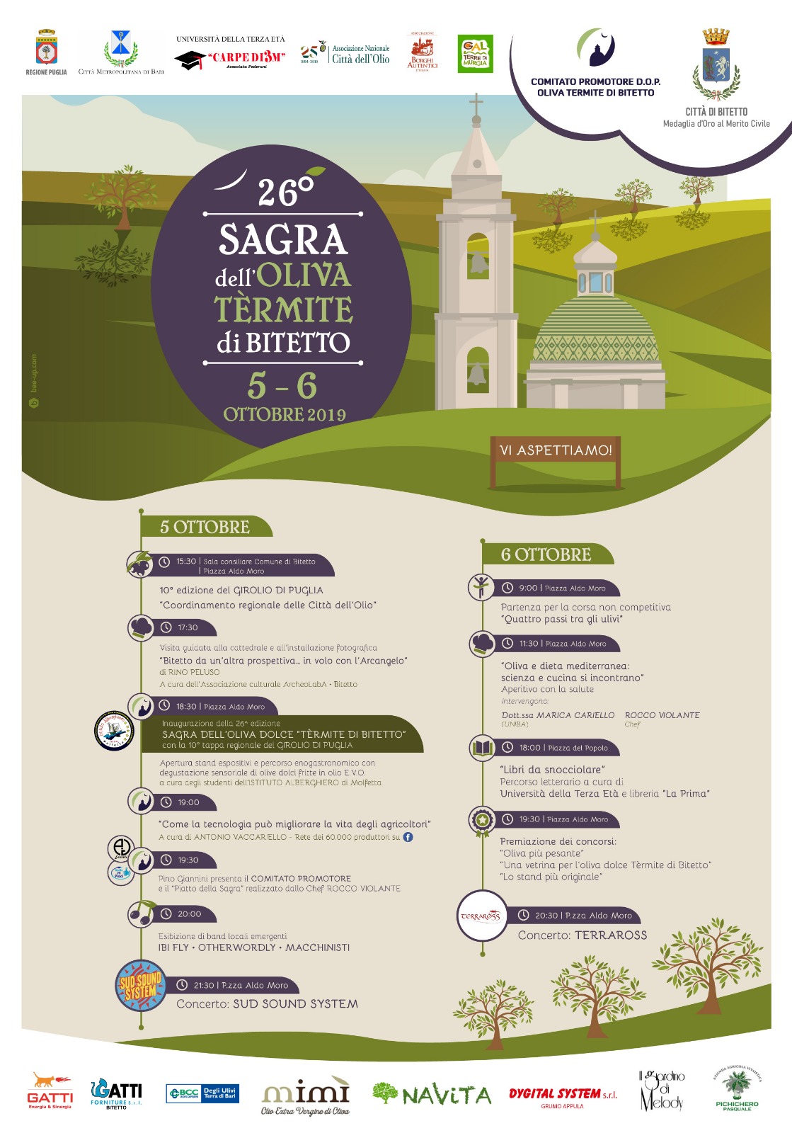 Sabato 5 e Domenica 6 Ottobre torna la 26a edizione della Sagra dell'Oliva Termite di Bitetto. Di seguito i dettagli...