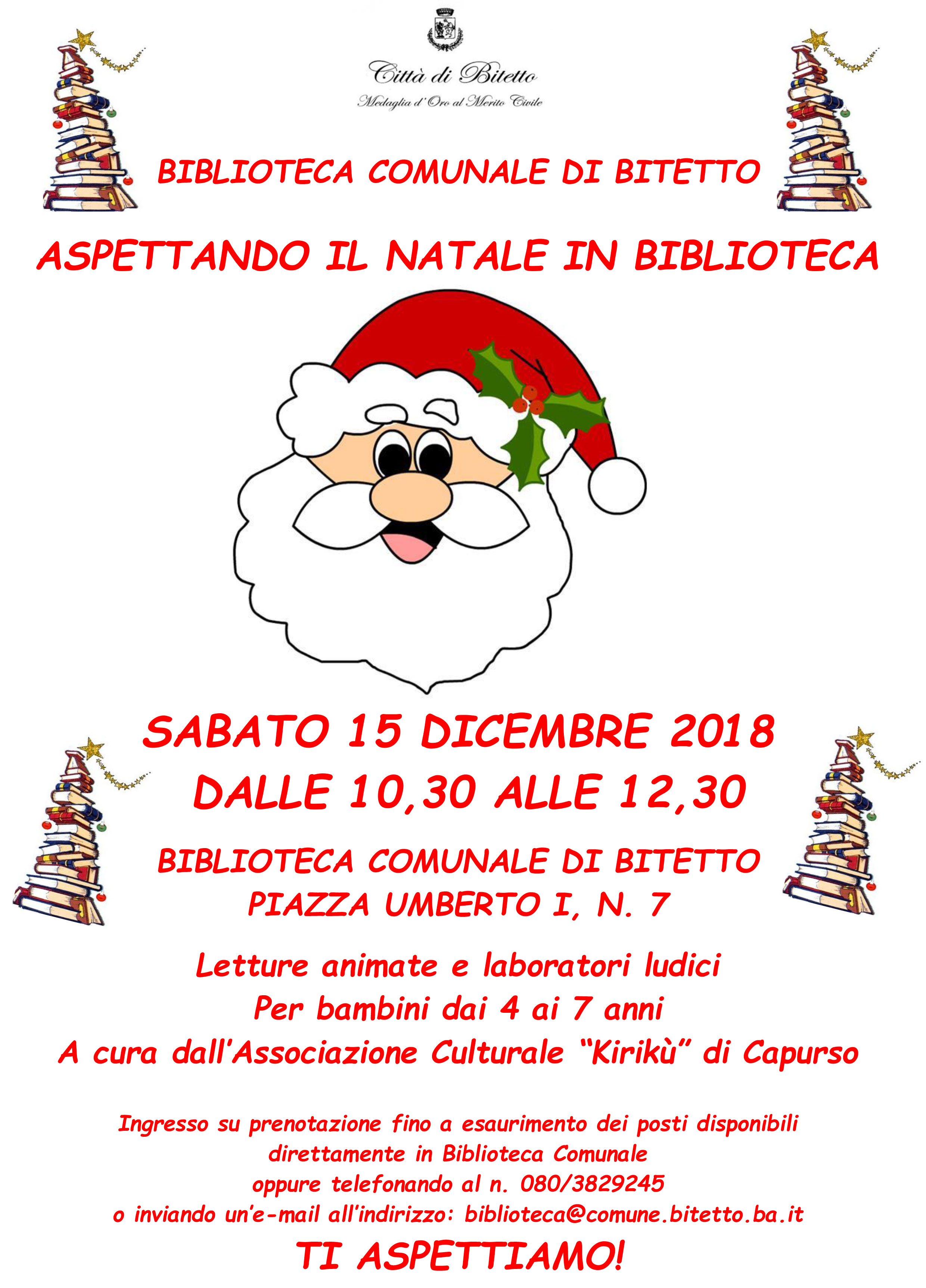 Sabato 15 Dicembre "Aspettando il Natale in Biblioteca", un'iniziativa dedicata alla lettura per bambini dai 4 ai 7 anni con letture animate e laboratori ludici...