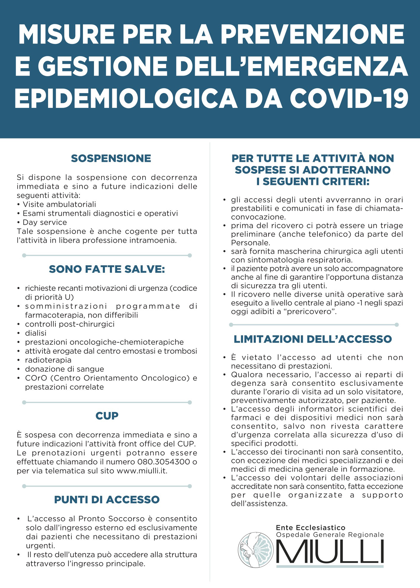 L’accesso al Pronto Soccorso è dunque ora possibile, ma è fondamentale che sia utilizzato solo dall’utenza con reali casi di urgenza e di estrema necessità - si legge nel Comunicato ufficiale pubblicato questa mattina su miulli.it