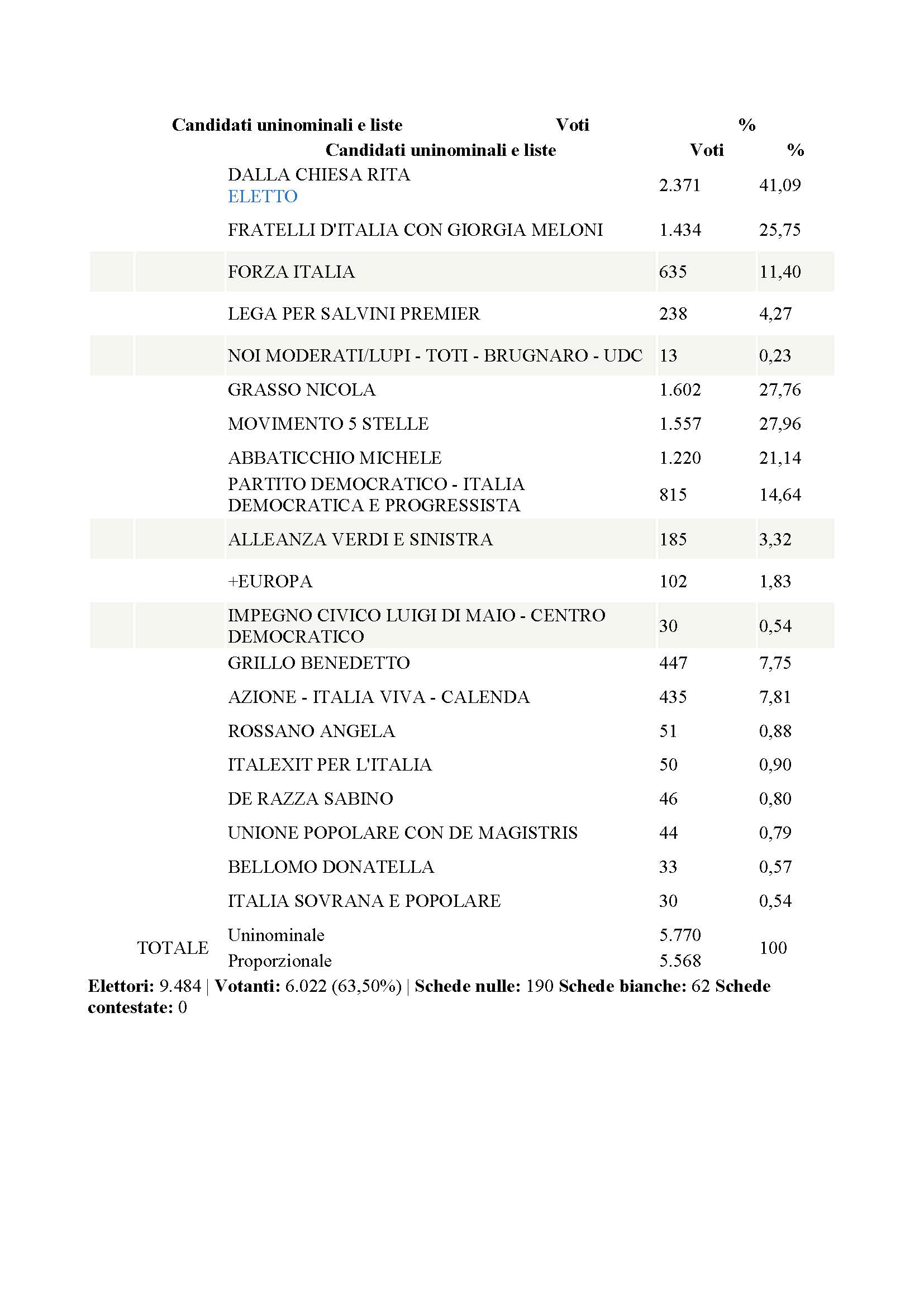 Pubblichiamo i risultati delle Elezioni Politiche 2022 a Bitetto.